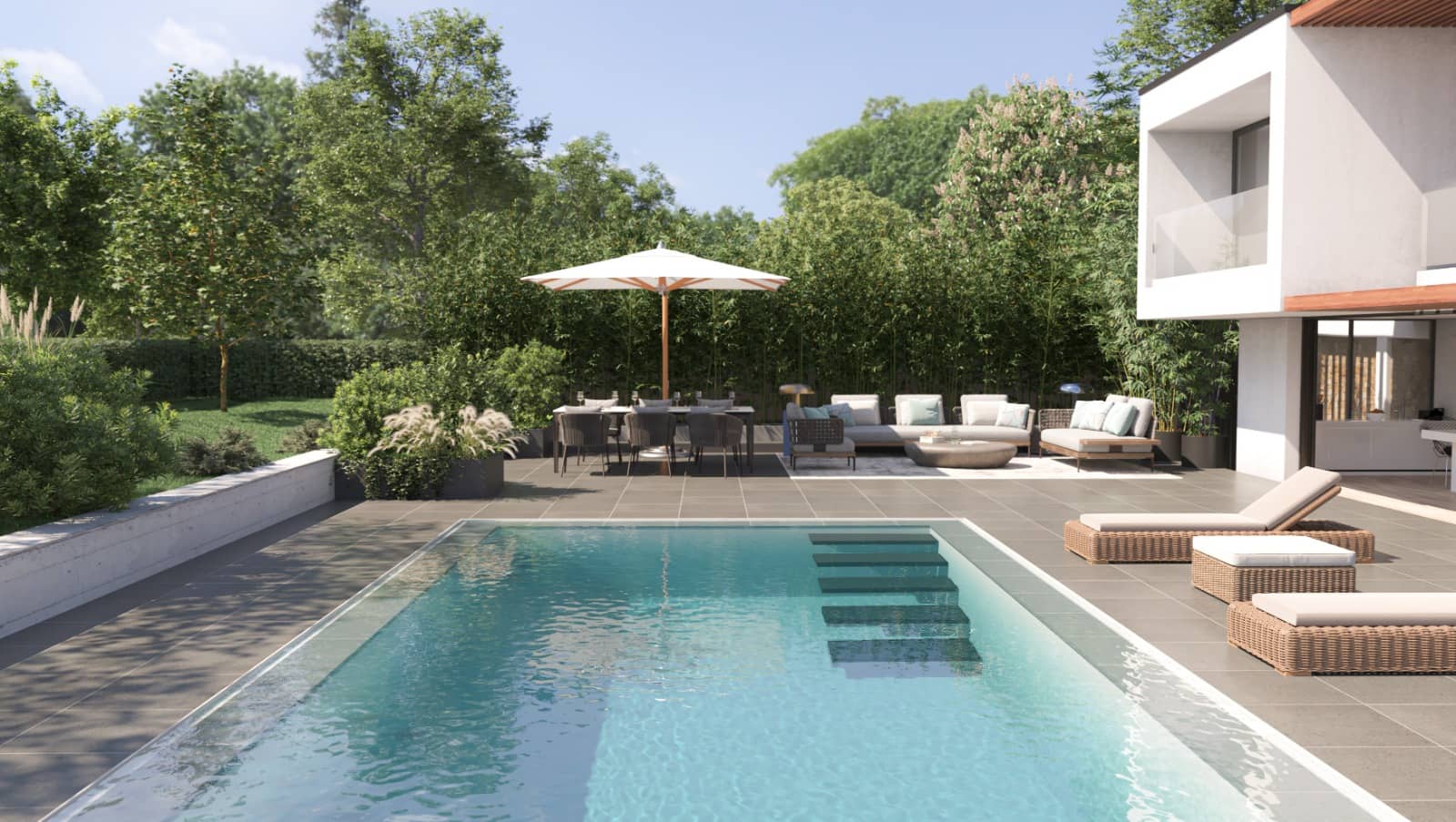 Construction sur mesure (béton) — Pour un projet totalement personnalisé : forme, dimensions, finitions, équipement haut de gamme. Un investissement pérenne pour votre jardin.